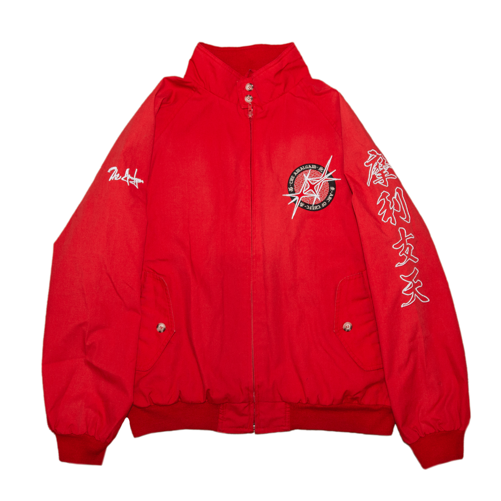 Blending traditional Kanji graphics with industrial embroidery placement, this drop nods to both the bōsōzoku aesthetic.